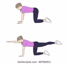 - Same as the bird dog exercise, alternate your limbs, lift and extend them up off the floor.